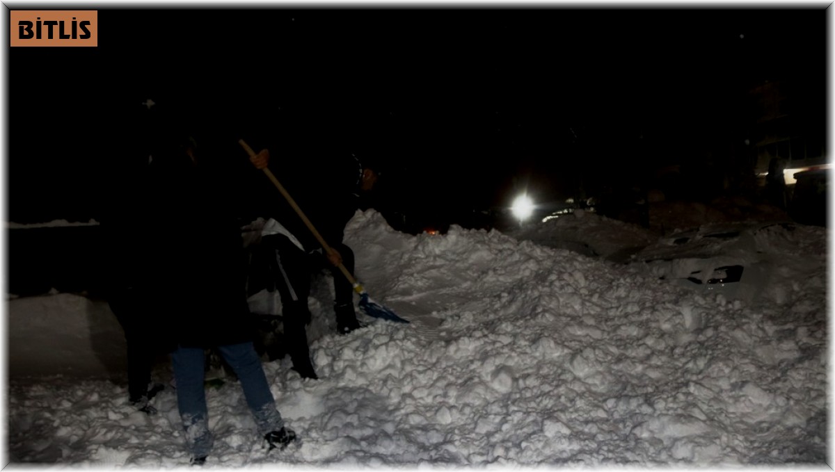 Hemen Afet ve Acil Durum Bitlis İl Müdürlüğü ve Bitlis Belediyesine durumu haber veren vatandaşlar, iş makinesi ve kendi imkanları ile araçlarını kar altından çıkarmaya çalıştılar.