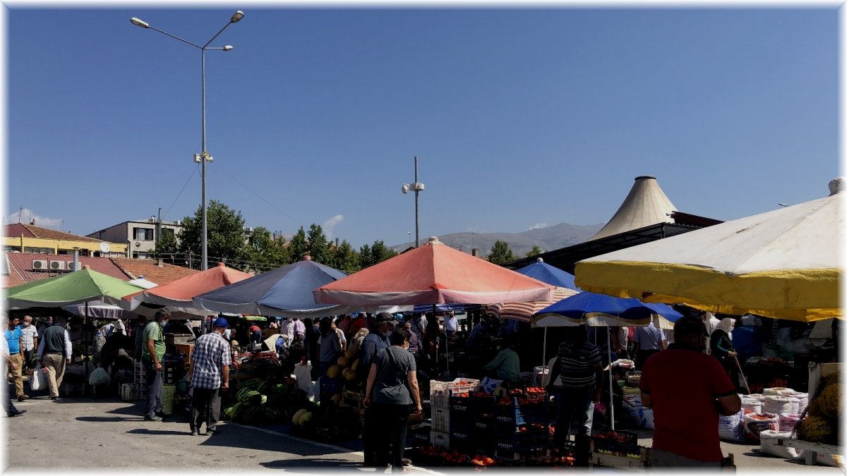 Yerli sebze ve meyvenin yanı sıra kızılcık, karadut, dut kurusu, kayısı kurusu, pestil, pekmez, bal başta olmak üzere çeşitli yerli ürünlerin satışının yapıldığı Buğday Meydanına vatandaşlar ilgi gösteriyor.
