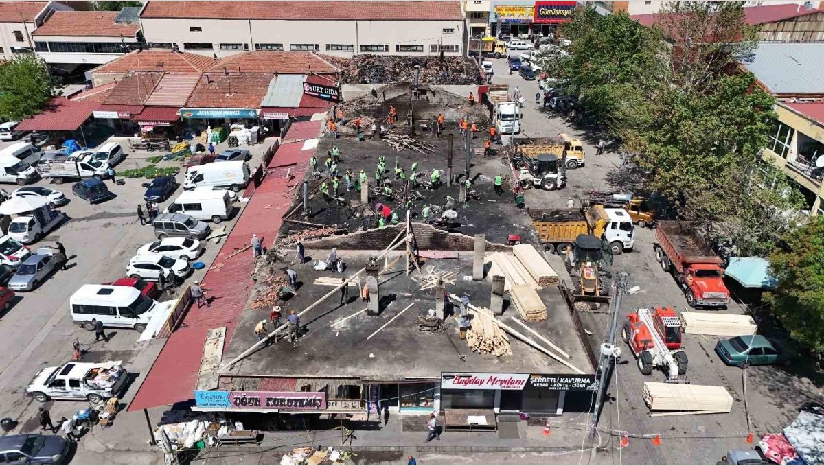 Aksun, yangından etkilenen iş yerlerinde incelemelerde bulunarak esnafla bir araya gelerek taleplerini dinledi. Belediye ekiplerinin, hasarlı çatıları temizleyerek yeniden inşa çalışmalarına başladığını belirten Aksun, sürecin en kısa sürede tamamlanacağını ifade etti.