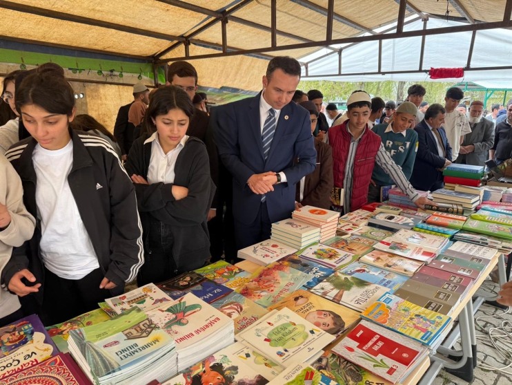Kaymakam Süleyman Bakan, fuarı ziyaret etti, kitaplar hakkında bilgi aldı.