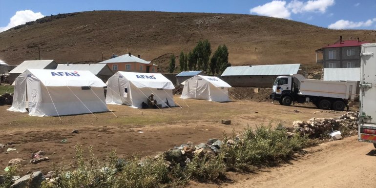 VAN - Van'ın Çaldıran ilçesinde etkili olan sağanağın ardından meydana gelen selde zarar gören mahalle ve mezralarda yaşayanlara gıda ve yemek yardımı yapılıyor.