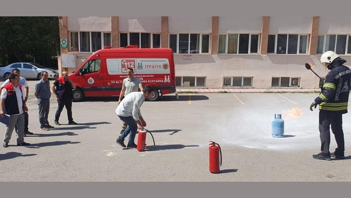 ERZURUM (İHA) - İl Tarım ve Orman Müdürlüğü ve Erzurum Büyükşehir Belediyesi İtfaiye Daire Başkanlığı ile işbirliğinde yangından korunma, yangının söndürülmesi, ekip personeli ile binadaki diğer görevliler tarafından yangın söndürme alet ve malzemelerinin nasıl kullanılacağı ve en kısa zamanda itfaiyeye nasıl ulaşılacağı konularında yangın eğitimi verilmiş akabinde haberli tahliye tatbikatı ve yangın söndürme tatbikatı yapıldı.