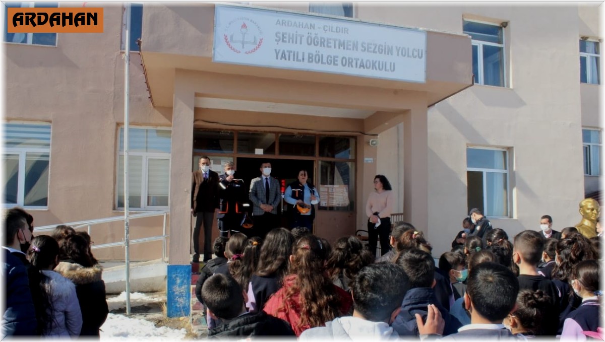 Ardahan - Kaymakam Fatih Bayram, Şehit Öğretmen Sezgin Yolcu Yatılı Bölge Ortaokulu'nu ziyaret ederek, önce sınıflarda öğrencilere afetlerde nasıl davranılması konusunda bilgi verdi daha sonra da deprem tahliye tatbikatına katıldı. Ardahan İl Afet ve Acil Durum Müdürlüğü personeli tarafından da öğrencilere yönelik bilgilendirme faaliyeti yapıldı ve acil durumlarda kurtarma tatbikatı yapıldı.