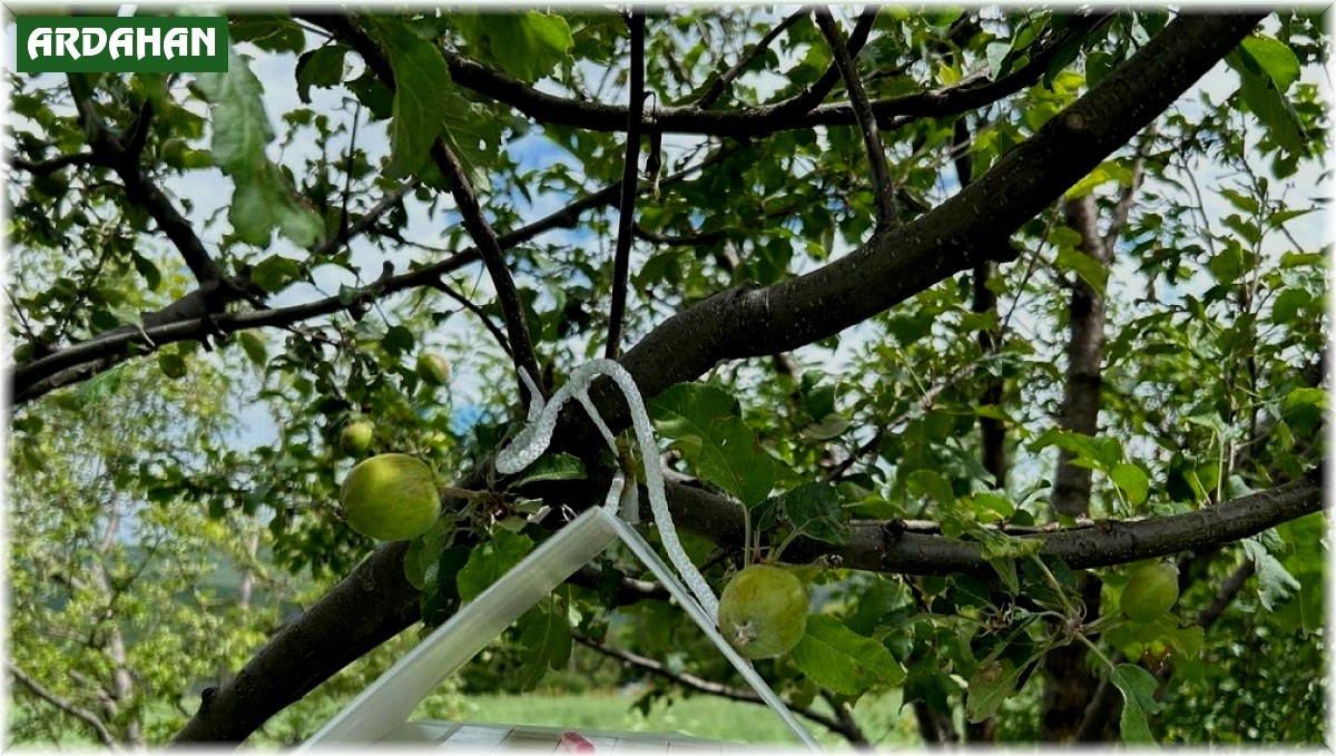Ardahan - Çıldır İlçe Tarım ve Orman Müdürlüğü personelleri tarafından meyvecilik yapılan Çıldır Kurtkale bölgesinde meyve ağaçlarına feromon tuzak asımı yapıldı.