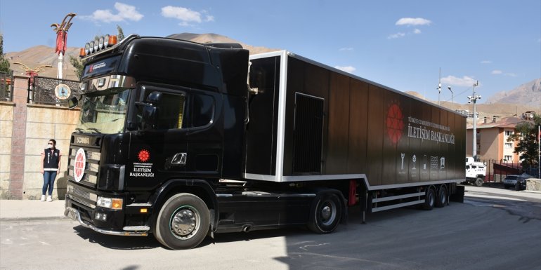 Hakkâri - Türkiye'nin milli, tarihi, kültürel, bilimsel ve teknolojik zenginliklerinin dijital sunumlarla anlatıldığı Cumhurbaşkanlığı İletişim Başkanlığı Mobil İletişim Tırı, Hakkari'de ziyarete açıldı.