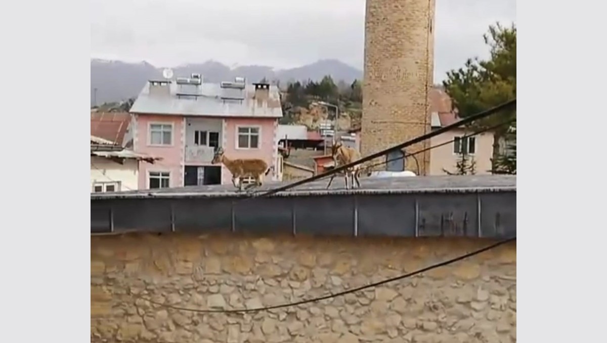 Tunceli'nin Çemişgezek ilçesinde daha önce sokaklarda sıkça görülen dağ keçileri, şimdide tarihi caminin ve yüksek katlı evlerin çatısında gezerken görüntülendi.