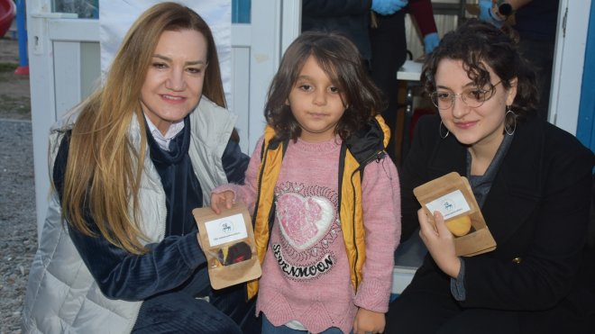 Burada faaliyete geçirdikleri içme suyu arıtma ünitesi ile diğer faaliyetlerinin son durumuyla ilgili bilgiler alan Hotar, depremzedelerin hizmetine sundukları bilim ve eğlence sınıfına katılan çocuklara kek verdi.