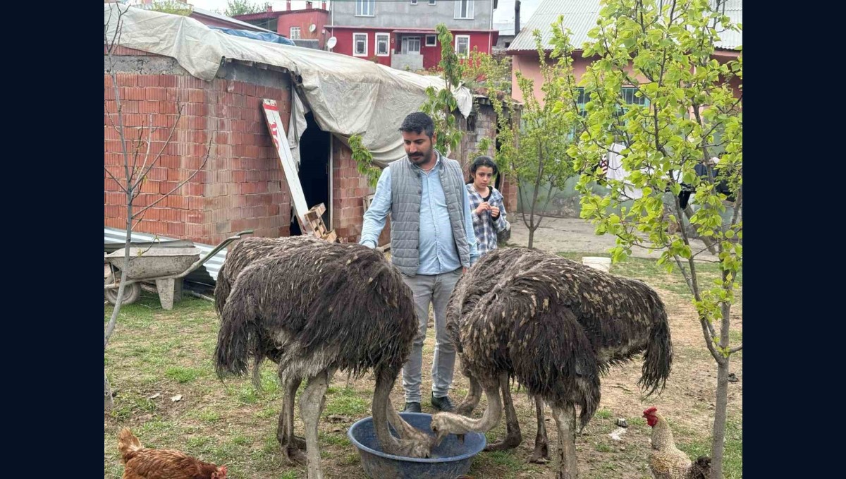 Iğdır'ın Tuzluca ilçesinde yaşayan İbrahim Öner'in beslediği deve kuşları mahalle halkının ilgi odağı oldu.
