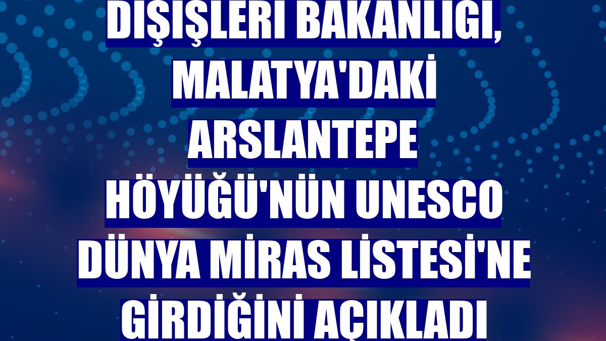 ANKARA - Dışişleri Bakanlığı, Malatya'da bulunan Arslantepe Höyüğü'nün Birleşmiş Milletler Eğitim, Bilim ve Kültür Örgütü (UNESCO) Dünya Miras Listesi'ne kaydedildiğini bildirdi.