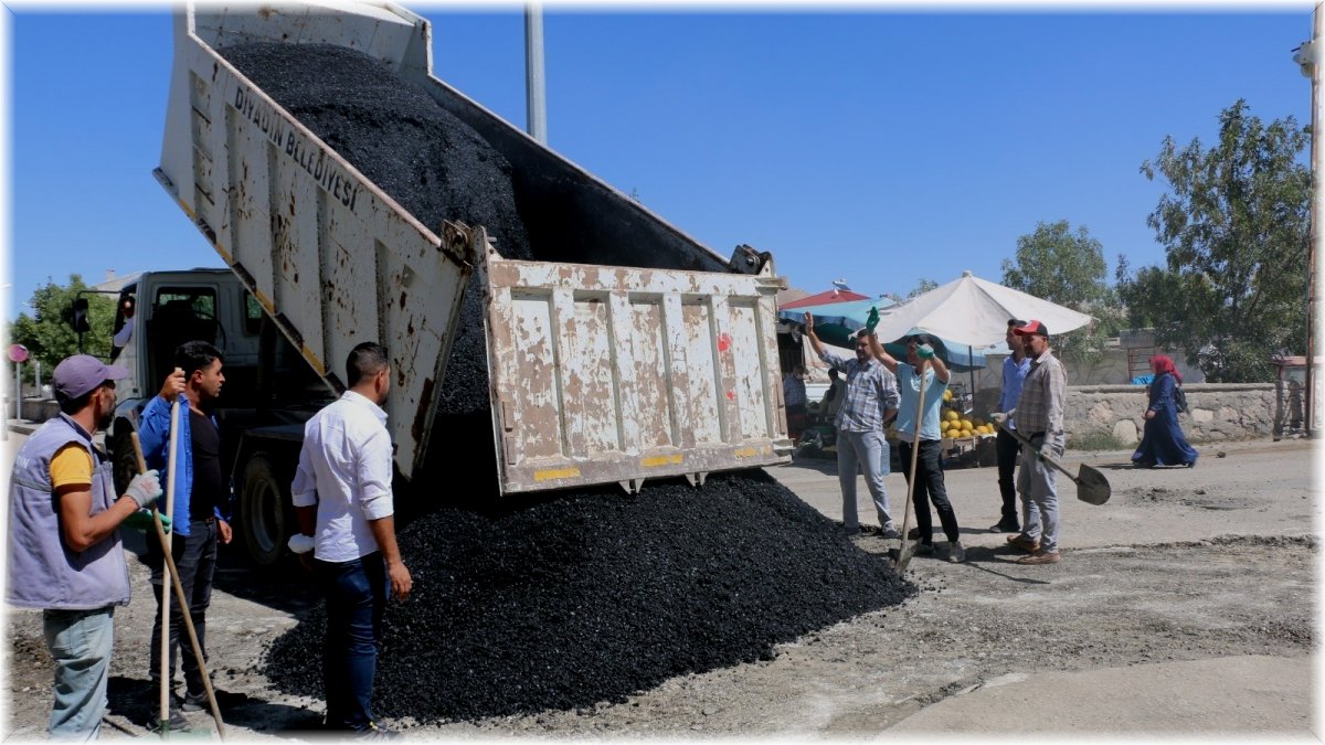 Ağrı'nın Diyadin Belediyesi, ilçe merkezinde deforme olmuş yollarda bakım ve onarım çalışmalarını sürdürüyor.