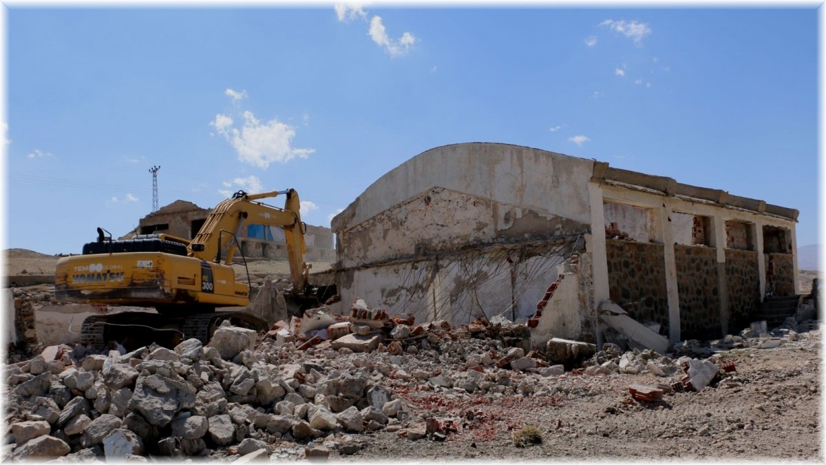 Diyadin Belediyesi Fen İşleri Müdürlüğü ekipleri, yılanlı kaplıcaları mevkiinde bulunan yıkılmaya yüz tutmuş metruk binaların yıkımını gerçekleştirdi.
