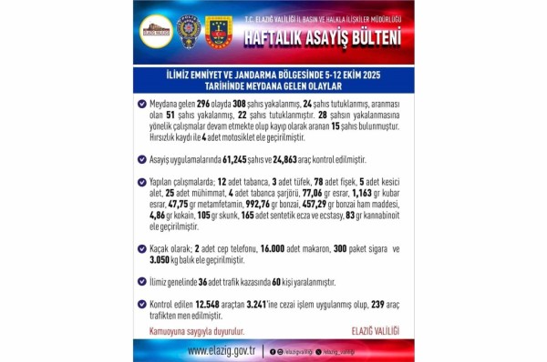 Cemil Karip | 2 ay önceElazığ'da son bir haftada meydana gelen 296 asayiş olayında, 308 kişi yakalanırken 24 şahıs tutuklandı. ELAZIĞ (İHA) - ...