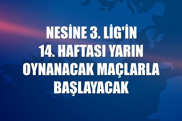 Cemil Karip | 1 gün önceİSTANBUL - Nesine 3. Lig'in 14. haftası, yarın gruplarda oynanacak 16 maçla başlayacak. Türkiye Futbol Federasyonunun ...