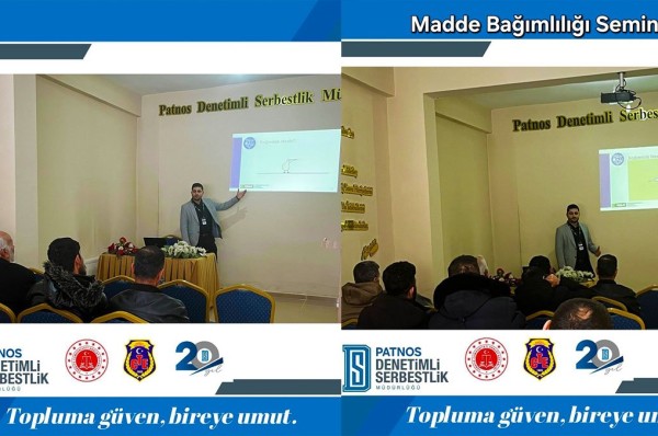 Metin Karip | 1 gün öncePatnos Denetimli Serbestlik Müdürlüğünce, iş birliği protokolü kapsamında yükümlülere yönelik “Madde Bağımlılığı” ...