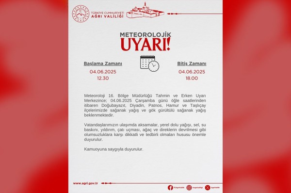 Metin Karip | 7 ay önceMeteoroloji 16. Bölge Müdürlüğü Tahmin ve Erken Uyarı Merkezi tarafından yapılan açıklamaya göre, 4 Haziran 2025 ...