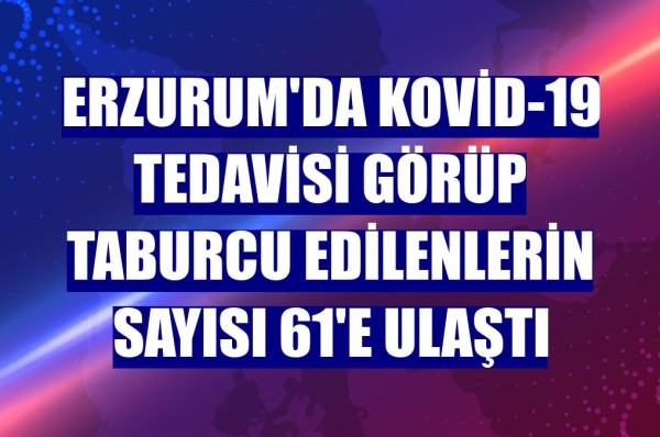 Metin Karip | 6 yıl önceErzurum'da, hastanelerde yeni tip koronavirüs (Kovid-19) tedavisi görüp iyileşerek taburcu edilenlerin sayısı 61'e ...
