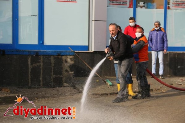 Diyadin'de caddeler tazyikli su ile yıkandı