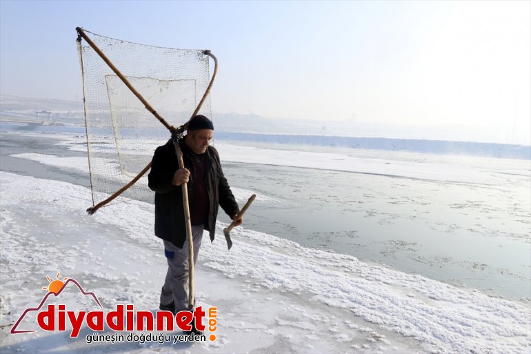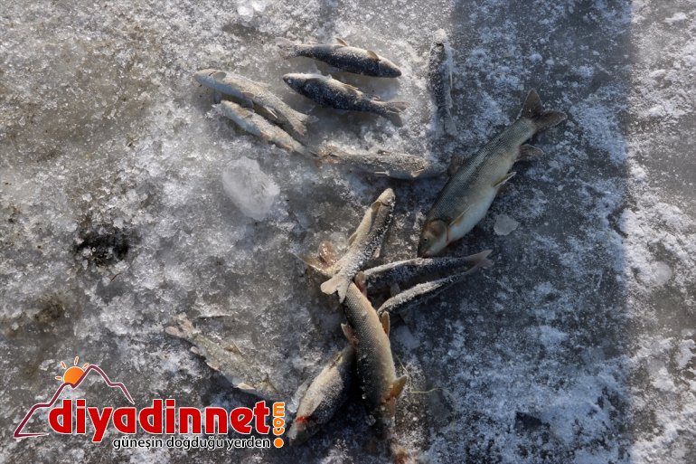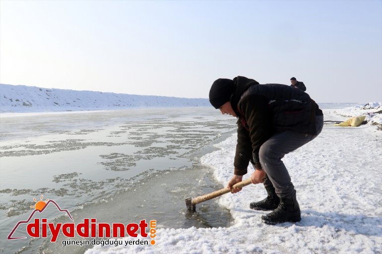Ağrı - Kış mevsiminin zorlu geçtiği Ağrı'da büyük bir kısmı donan Murat Nehri'nde vatandaşlar, dondurucu soğuklarda buzları kırarak balık avlıyor.