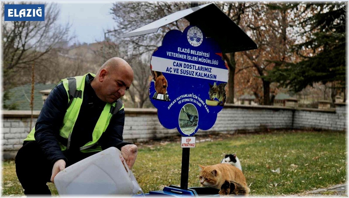 Soğuk kış gününde sokak hayvanlarını unutmayan Elazığ Belediyesi ekipleri, parklarda bulunan noktalara su, mama ve yem bıraktı.