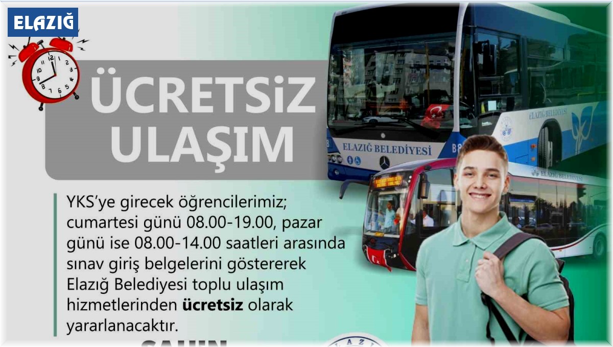 Elazığ Belediyesi, hafta sonu gerçekleştirilecek Yükseköğretim Kurumları Sınavına girecek öğrencilerin ulaşımda aksaklık yaşamamaları için ücretsiz ulaşım imkanı sunacak.