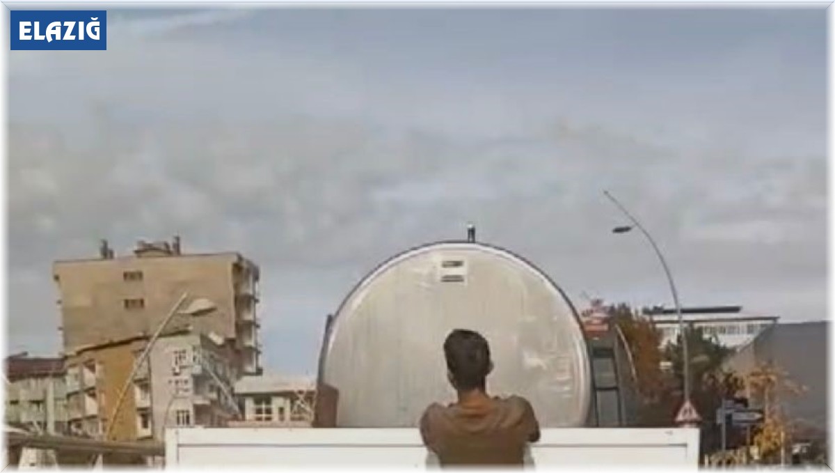 Elazığ'da kimliği belirsiz 2 çocuğun, seyir halinde bulunan pikabın arkasına asılarak gittiği anlar cep telefonu kamerasına yansıdı.