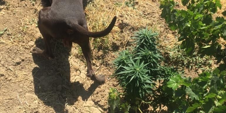 Bunun üzerine narkotik köpeğin de katılımıyla söz konusu eve operasyon düzenleyen ekipler, bahçede plastik kovalara ve toprağa ekili 53 kök Hint keneviri ele geçirdi.