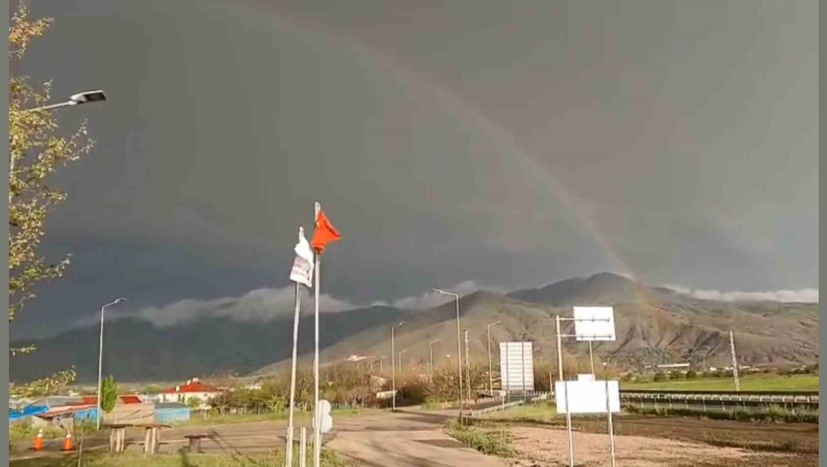 Elazığ'da yağmur sonrası gökyüzünde beliren gökkuşağı, şehirde görsel şölen oluşturdu.