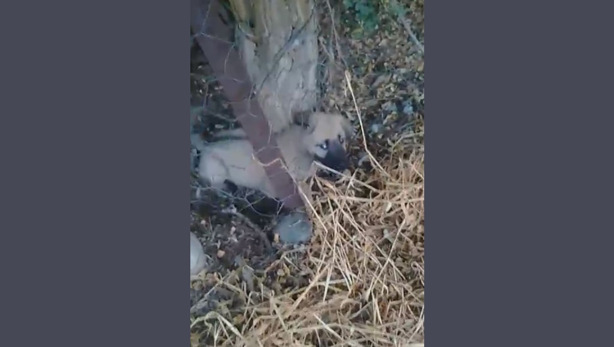 Elazığ'da kafasını tel örgülere sıkıştıran yavru köpeği kurtaran vatandaşın gösterdiği mücadele yürekleri ısıttı.