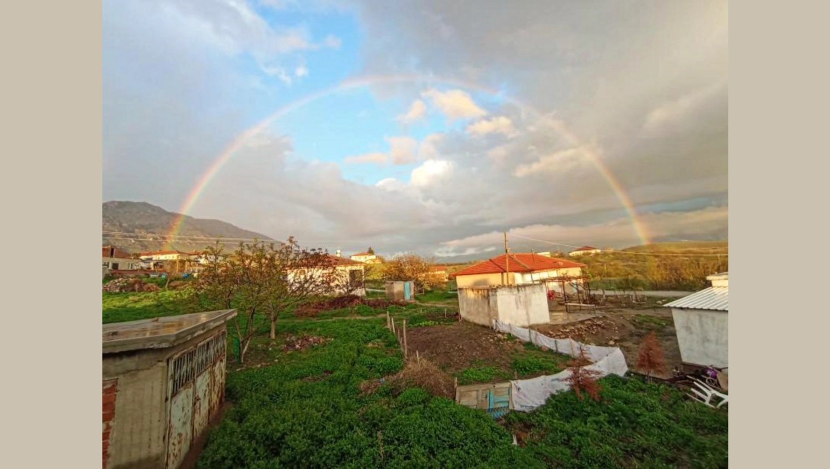 Elazığ'da etkili olan sağanak yağmurun ardından oluşan gökkuşağı görenleri hayran bıraktı.