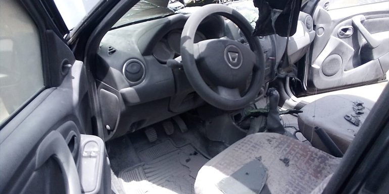 Patlamanın etkisiyle camları kırılan, sürücü bölümünde hasar oluşan araçtan duman çıktığını gören hastanenin güvenlik ekibi, alevler büyümeden yangın söndürme tüpleriyle müdahale etti.