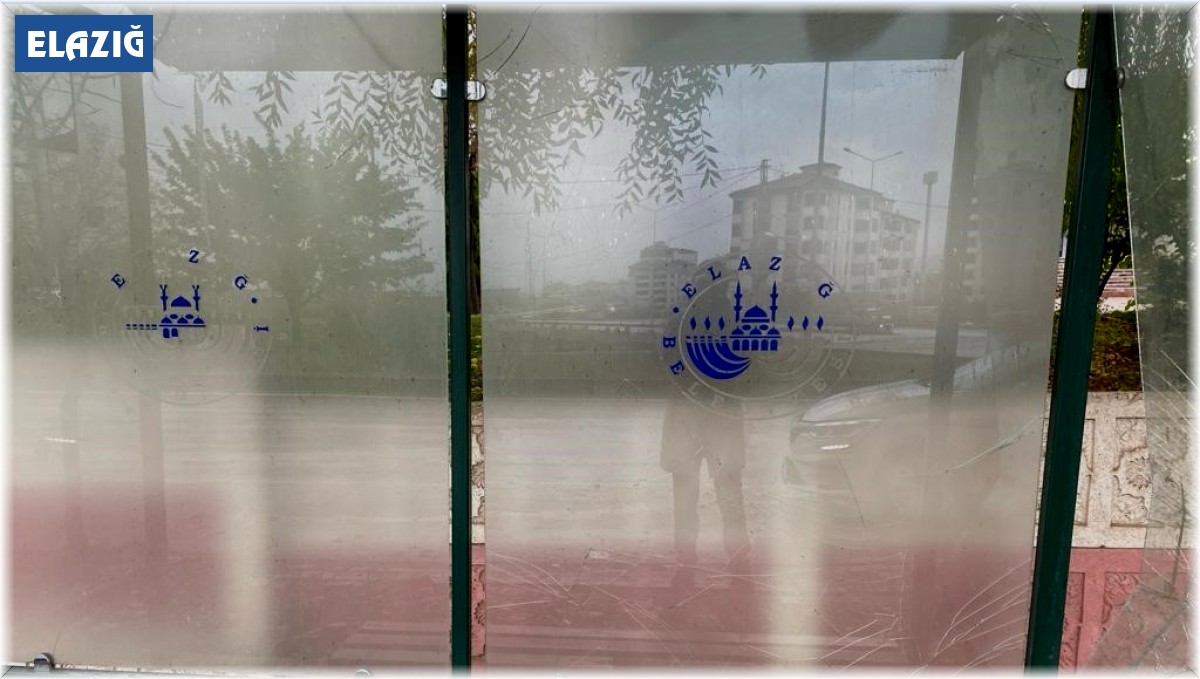 Elazığ'da şehir magandaları belediyeye ait otobüs durağının camlarını kırdı.