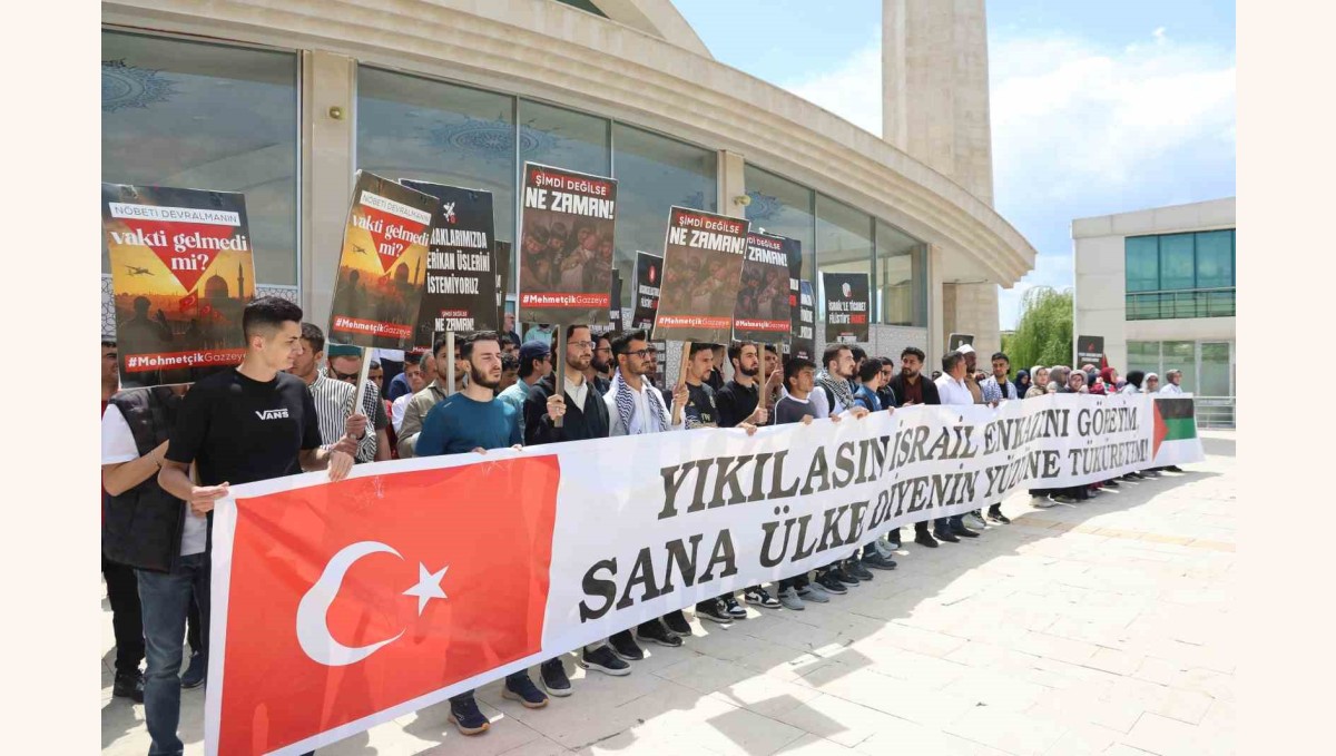 Yürüyüş hakkında bilgi veren öğrencilerden Zeki Kaya Alp, "2 Mayıs 2025 gecesi 150 günü aşkın süre boyunca türlü siyasi ve bürokratik engellemelerle İstanbul'da bekletildikten sonra Filistin'e insani yardım ulaştırmak amacıyla yola çıkan vicdan gemisi, uluslararası sularda bulunduğu esnada Siyonist İsrail tarafından dron saldırısına uğramıştır. 2010 yılında Mavi Marmara Gemisi'ne düzenlenen saldırıda 10 vatandaşımız şehit edilmiş, uluslararası hukuk açıkça çiğnenmiştir. Bugün aynı zihniyetle tekrar sahneye çıkmış ve yine insanlık suskun kalmıştır. Arada geçen 15 yılda değişen tek şey, İsrail'in cüretkarlığının boyutudur. Biliyoruz ki suç cezasız kalırsa zalim daha büyüğünü yapar. Tıpkı bugün olduğu gibi. Silahsız, sivil ve tamamıyla insani yardım amacı taşıyan bu gemiye yönelik saldırı bir savaş suçudur. Bu saldırı sadece yardım gönüllülerine değil, ümmetin iradesine, insanın vicdanına ve İslam dayanışmasına karşı yapılmış bir meydan okumadır" dedi.