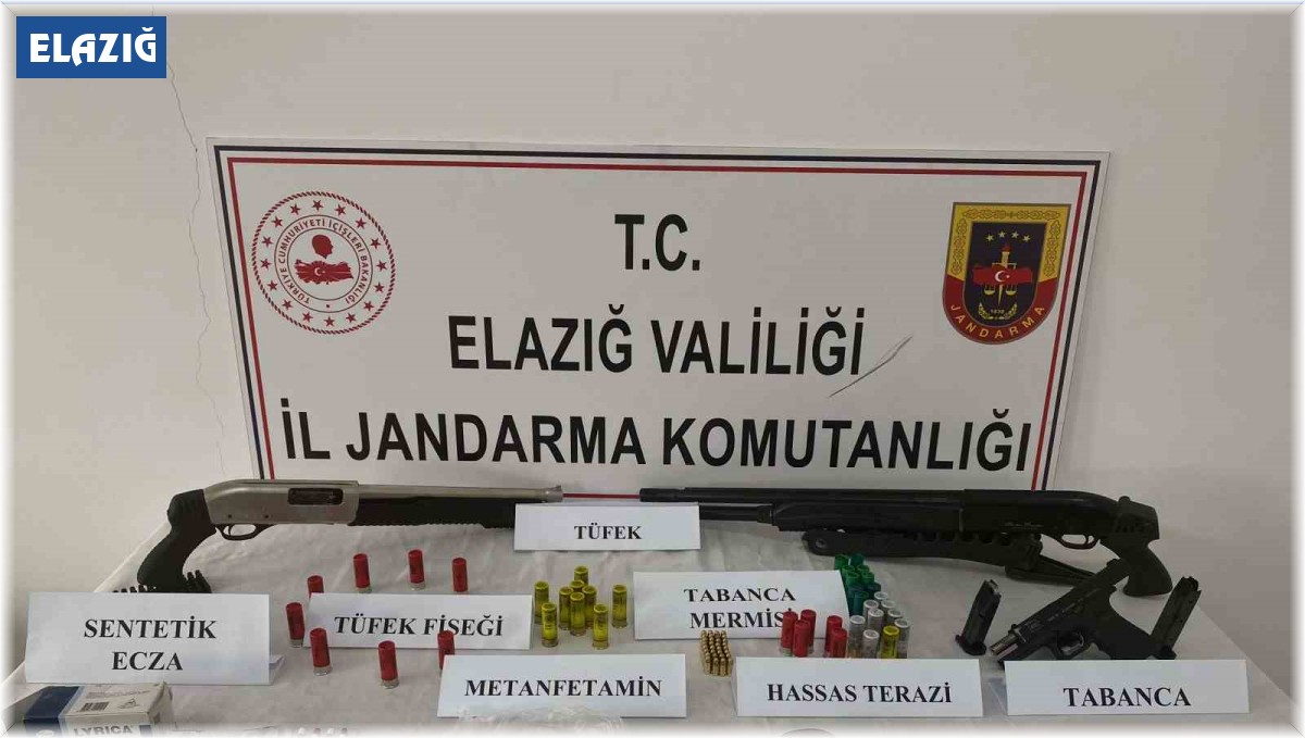 İş yerinde yapılan aramada, 21 gram metamfetamin, 7 adet Lyrıca hap, 1 adet hassas tartı, 2 adet ruhsatsız pompalı tüfek, 1 adet ruhsatsız tabanca, 32 adet tabanca fişeği, ve 13 adet av tüfeği fişeği ele geçirildi.