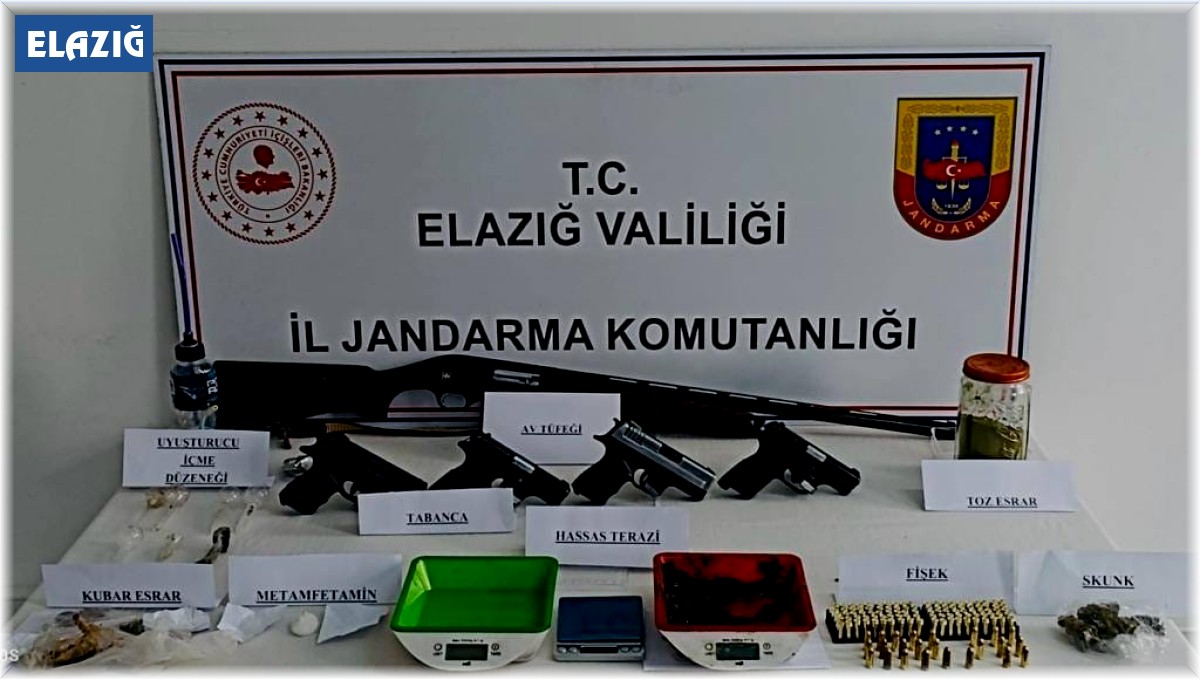 Elazığ - Elazığ İl Jandarma Komutanlığı Kaçakçılık ve Organize Suçlarla Mücadele ekiplerince, Palu ilçesinde 30 şüpheliye yönelik operasyon yapıldı. Operasyonda 7 şüpheli yakalanarak gözaltına alınırken uyuşturucu madde kullanıcısı 21 şahıs hakkında adli işlem yapıldı. Operasyonda, 742 gram toz esrar, 61 gram skunk, 5 fişek kubar esrar, 4 fişek metamfetamin, 3 adet hassas terazi, 4 adet tabanca, 1 adet av tüfeği, ve muhtelif uyuşturucu madde kullanma aparatı ele geçirildi.