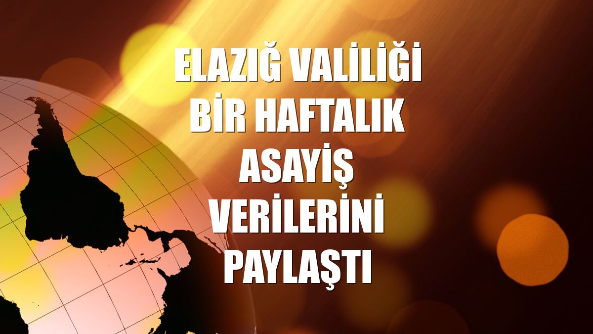 ELAZIĞ (AA) - Elazığ Valiliği emniyet ve jandarma bölgesindeki bir haftalık asayiş verilerini açıkladı.