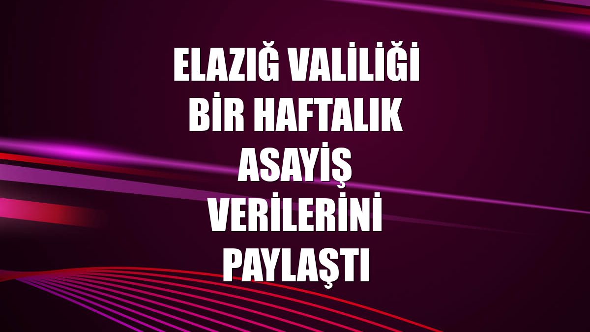 ELAZIĞ (AA) - Elazığ Valiliği emniyet ve jandarma bölgesindeki bir haftalık asayiş verilerini açıkladı.