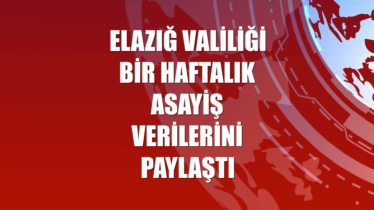 ELAZIĞ (AA) - Elazığ Valiliği emniyet ve jandarma bölgesindeki bir haftalık asayiş verilerini açıkladı.