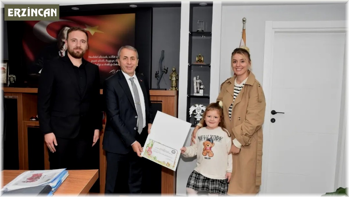 mesajını vererek yayınlanan videoyla viral olan Elif Liya Ayazlı ve ailesi Erzincan İl Emniyet Müdürü Kenan Kurt'u ziyaret etti.