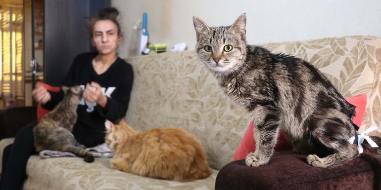 Evinin çatı katında da doğum yapan kedilerin bulunduğunu, sokaktakiler için de kapının önüne sürekli mama bıraktığını dile getirerek, kazanın ardından hayvanlarla hep iç içe yaşam sürdüğünü söyledi.