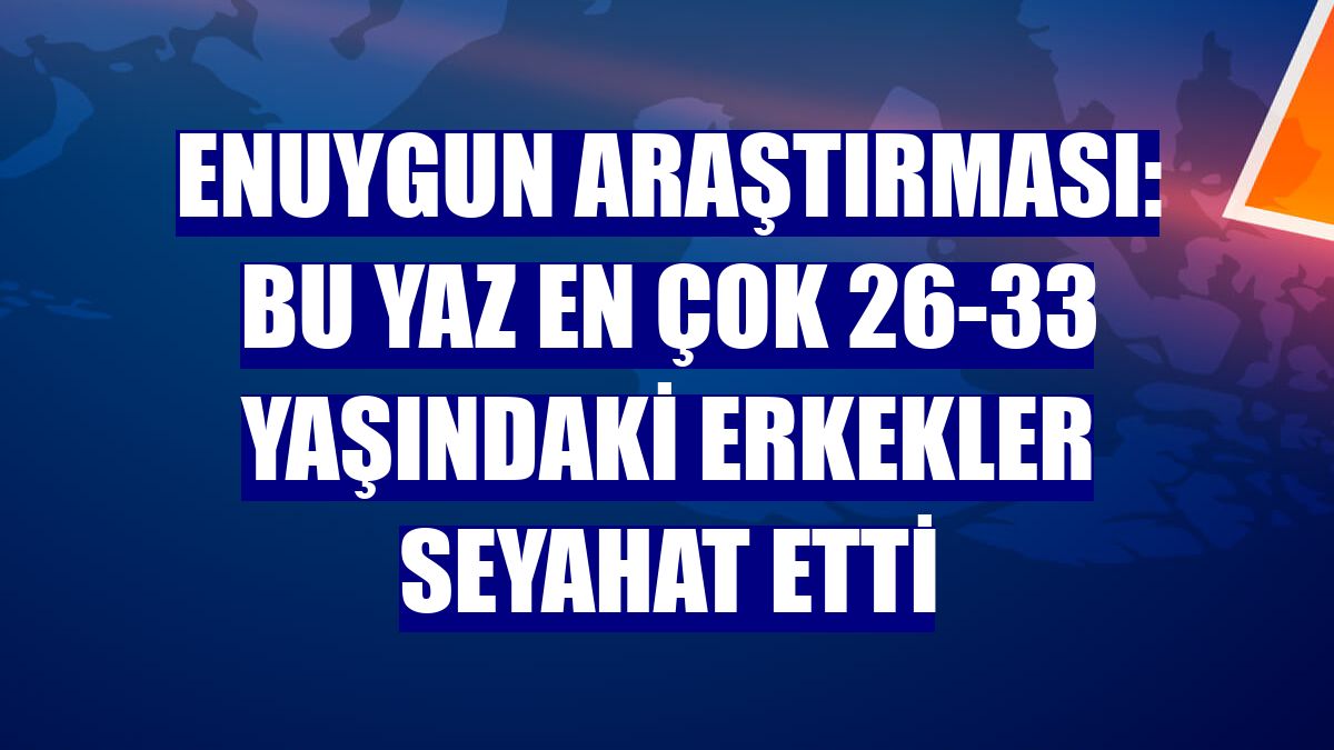 İSTANBUL - Seyahat sitesi Enuygun'un yaz sonu değerlendirme araştırmasının sonuçlarına göre, bu yaz en çok seyahat eden kişiler 26-33 yaşındaki erkekler oldu.