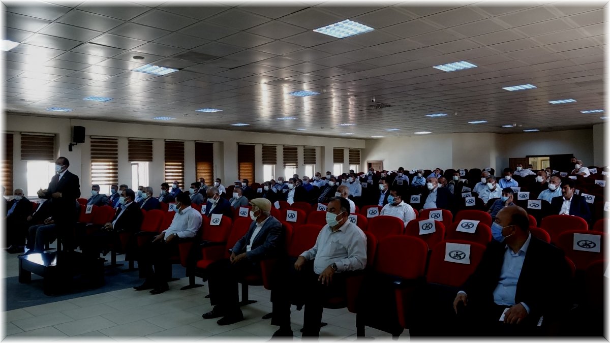 Van: Erciş Kaymakamı ve Belediye Başkan Vekili Nuri Mehmetbeyoğlu başkanlığında muhtarlara yönelik yapılan Covid-19 bilgilendirme toplantısına İlçe Emniyet Müdürü Süleyman Trak, İlçe Jandarma Komutanı Yarbay Mehmet Demir, Şehit Rıdvan Çevik Devlet Hastanesi Başhekimi Uzm. Dr. Suat Altın ve Erciş mahalle muhtarları katıldı.