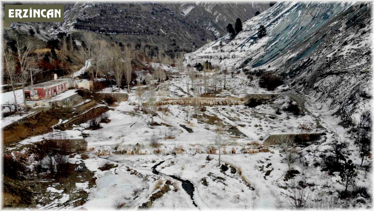 Soğuk havanın etkili olduğu Erzincan'da dereler buz tuttu.