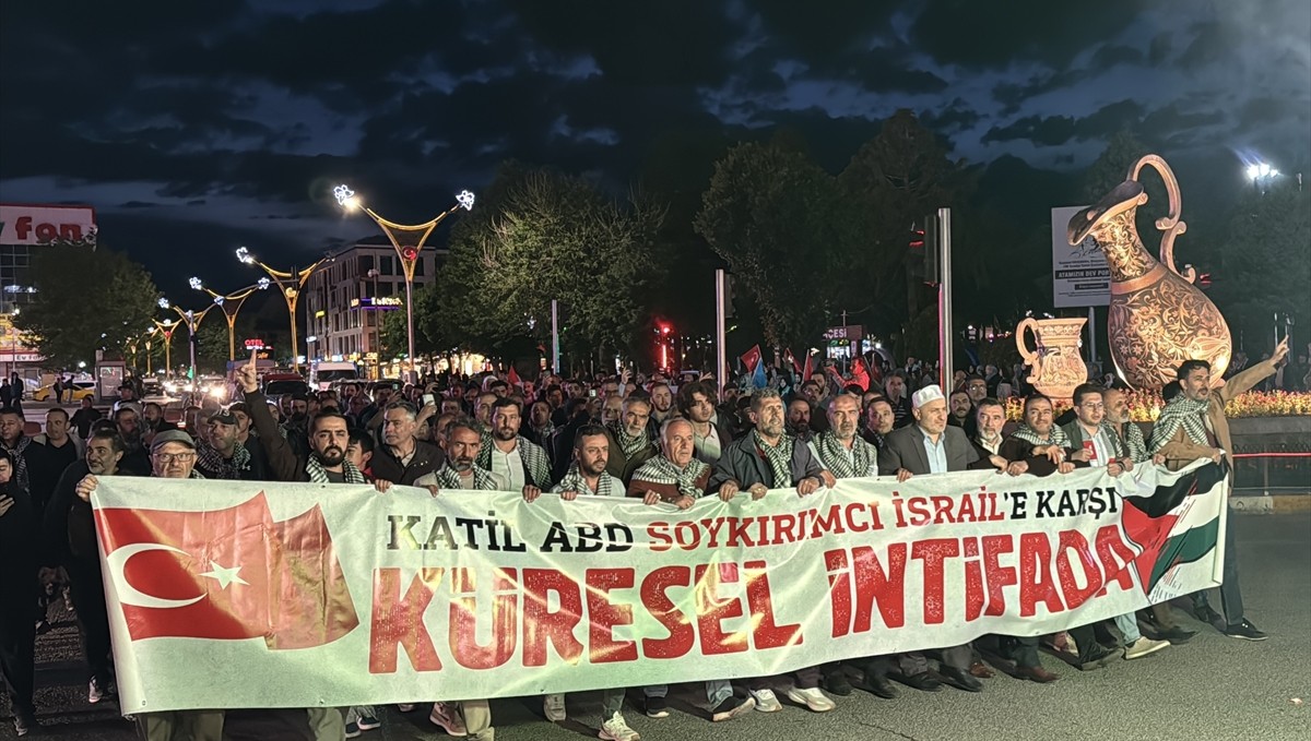 Erzincan (AA) - Erzincan'da vatandaşlar ile üniversite öğrencileri, İsrail'in Gazze'ye yönelik saldırılarını protesto etmek ve zulme dikkati çekmek amacıyla yürüyüş yaptı.