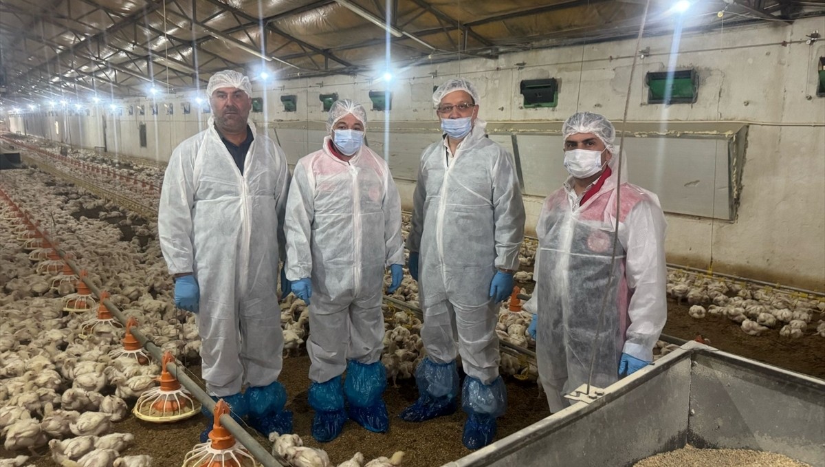 Tarım ve Orman İl Müdürü Alper Koçaker, ESK Erzincan Kanatlı Kombinası Müdürü Hakan Aktürk ile birlikte Çelebi Şahin'e ait işletmede incelemelerde bulunarak bilgi aldı.
