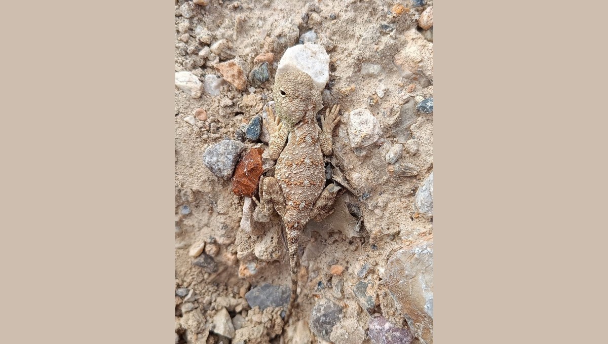 Karakteristik yassı vücut yapısı ve kum rengine uyumlu teniyle bilinen Bozkır Keleri net bir şekilde görülüyor. Bu tür, özellikle yarı kurak bozkır alanlarında yaşam sürüyor ve yaşam alanlarının daralması nedeniyle tehdit altında bulunuyor.