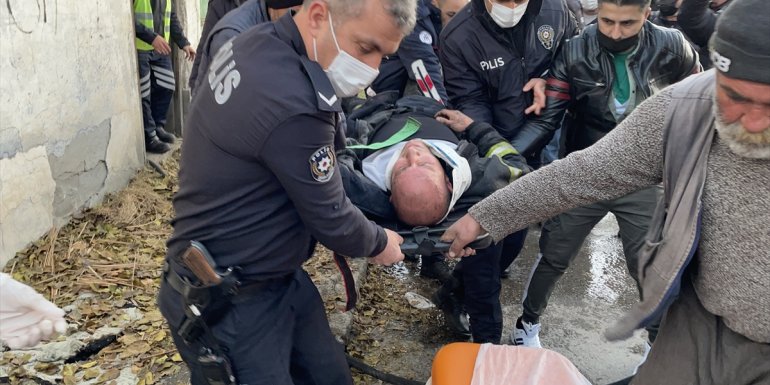 Yangına müdahalenin ardından soğutma çalışması yapan itfaiye erlerinden Cihan Ekinci, tek katlı evin çatısının kırılmasıyla zemine düştü.