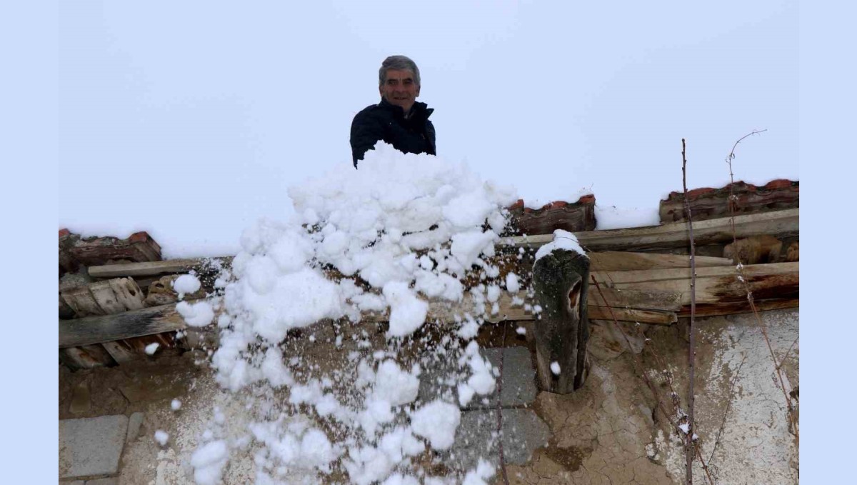Refahiye ilçesine bağlı köylerde kardan toprak damlı evlerin üzeri kapandı. Bazı vatandaşlar damlarından su akmaması için kar küreme işine koyuldu.