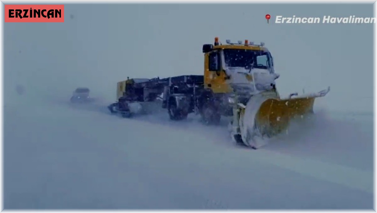 Erzincan Yıldırım Akbulut Havalimanı'nda kar yağışı ve buzlanmanın uçuşları aksatmaması için çalışma yapılıyor.