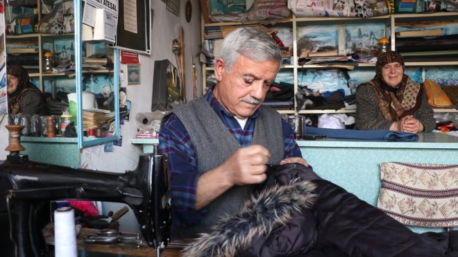 Erzincan - KEMAL ÖZDEMİR - Erzincan'da yarım asırdır terzilik yapan 73 yaşındaki Mustafa Birinci, 10 metrekarelik iş yerinde eşiyle mesleğini sürdürmeye çalışıyor.