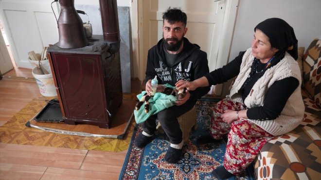 "Bir koyunumuz erken doğum yaptı. Kuzumuz cansız durduğu için ölü doğdu diye düşündük. İçeriye sobanın yanına getirdik sütünü verdik karnını doyurduk. Sobanın yanında sıcakta biraz kendine geldi. Şu anda gayet iyi ve sağlıklı."
